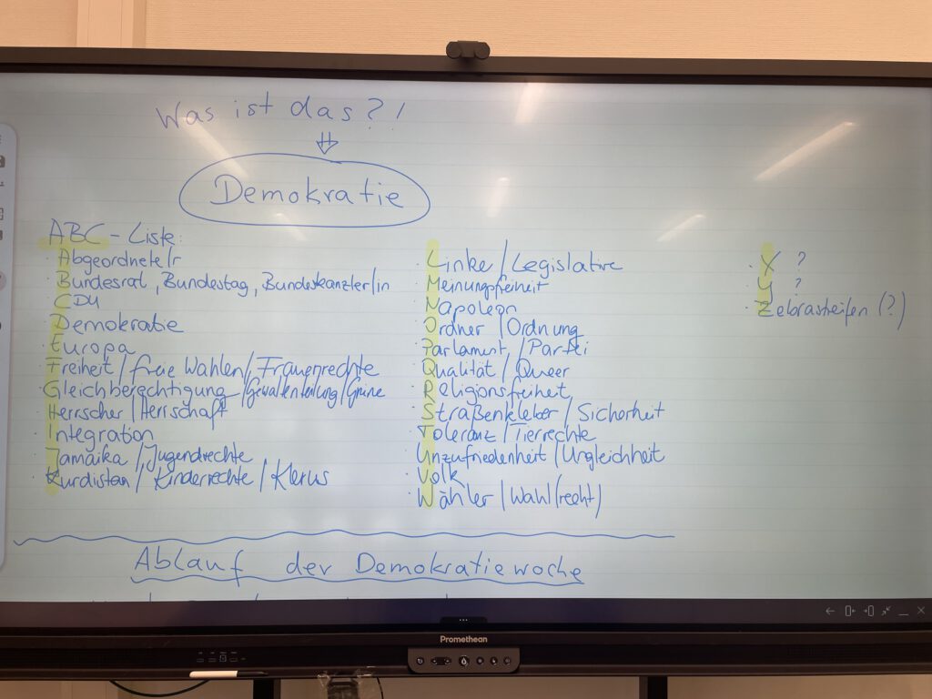 Was macht eine Demokratie aus? Warum ist es wichtig, unsere Demokratie zu schützen? Und was bedeutet es für mich als Kind oder Jugendliche bzw. Jugendlicher, in einer Demokratie zu leben? Seit letztem Jahr steht unsere Vorhabenwoche zu Beginn des zweiten Halbjahres unter dem Schwerpunkt „Demokratiebildung„, um diesem wichtigen Thema einen festen Platz in der schulischen Bildung zu geben.
