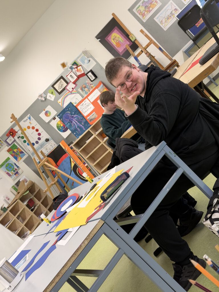 Zurück in der Schule entstanden Stellwände, Präsentationsformate und begleitende Materialien, die den gesamten Arbeitsprozess sichtbar machen – von ersten Ideen über Recherche bis hin zur Gestaltung. Ergänzt wird dies durch ein Scribble- und Skizzenbuch, in dem Gedanken, Beobachtungen und Entwürfe dokumentiert wurden.