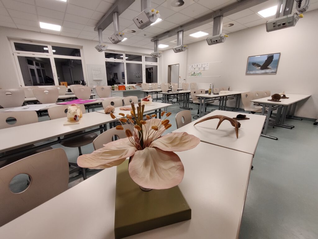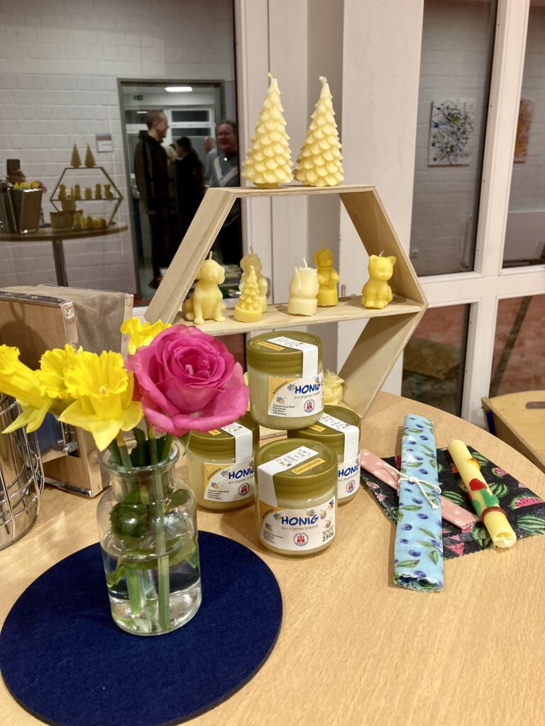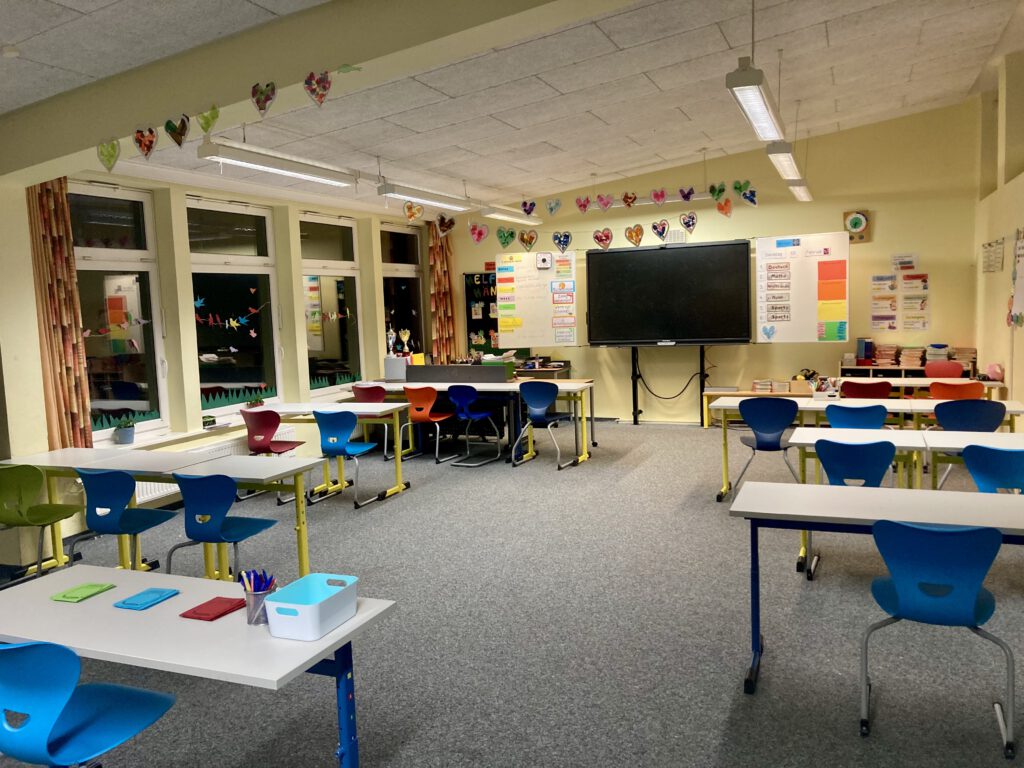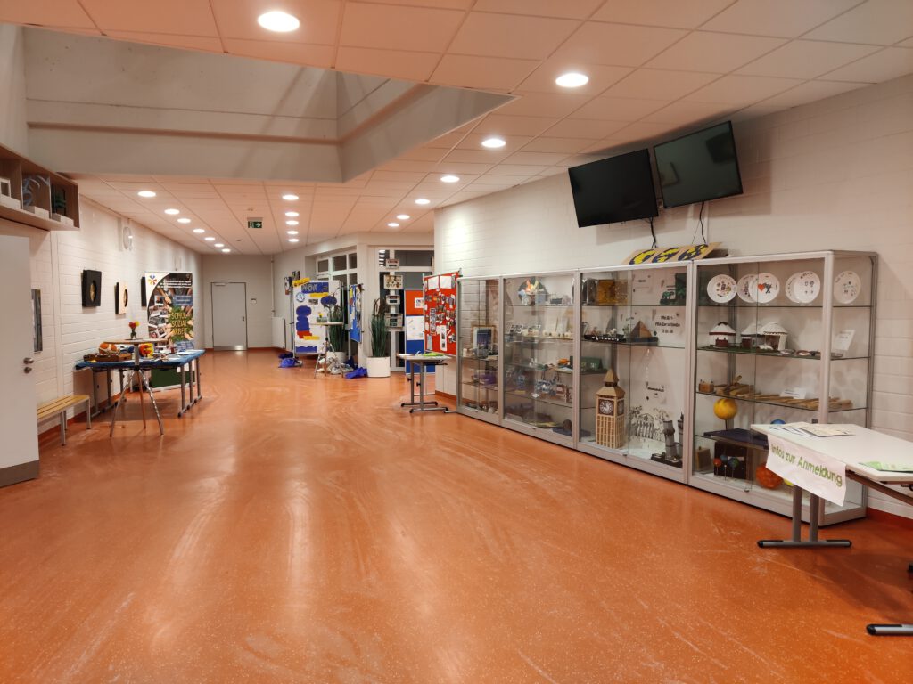 Anschließend führten Lehrkräfte die Familien über das Schulgelände zu verschiedenen Stationen. So konnten sie sowohl unsere Schulbücherei und den Kunstraum als auch einen Klassenraum und einen NaWi-Raum besuchen. Im Neubau informierten Lehrkräfte und die Schulsozialarbeit außerdem über die Angebote der OGS, die Bienen-AG und den Polenaustausch. Versorgt wurden die Gäste mit frischgebackenen Waffeln aus der Schulküche.