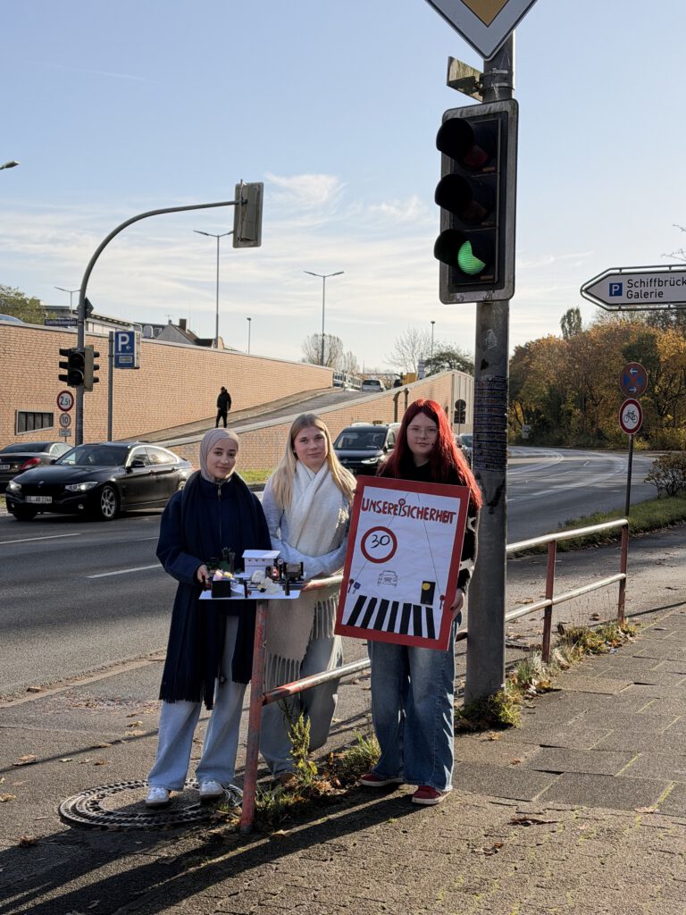 Der Appell war Teil des Unterrichtsprojekts „Fit for Future – Lernen durch Engagement“ im Wahlpflichtunterricht des 7. Jahrgangs. Unter der Leitung von Jens Bardenhagen und Thomas Uellner entwickelten die SchülerInnen im Kurs „Sicher zur Schule“ eigene Modelle und Vorschläge für eine sichere Verkehrsführung rund um die Schule. Diese wurden der Stadtverwaltung präsentiert – und stießen dort auf offene Ohren.
